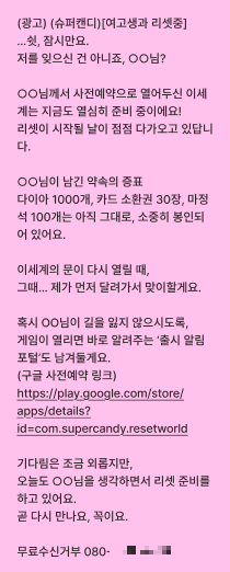 이번 SMS는 단순 안내가 아니라 친밀감과 기대감을 유지하는 편지 형식으로 구성했다.